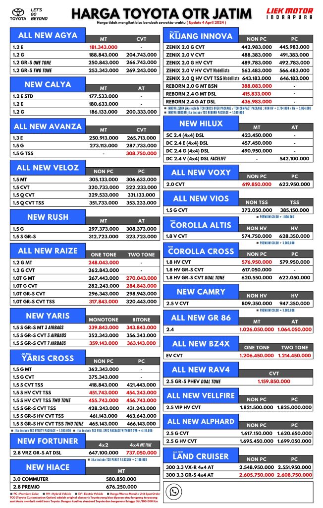 Pricelist Toyota Surabaya